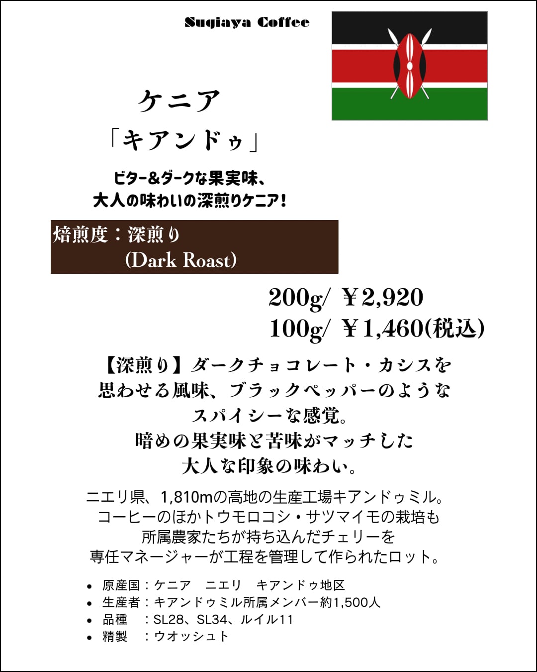 ケニア 中煎り/深煎り「キアンドゥ」Washed100g