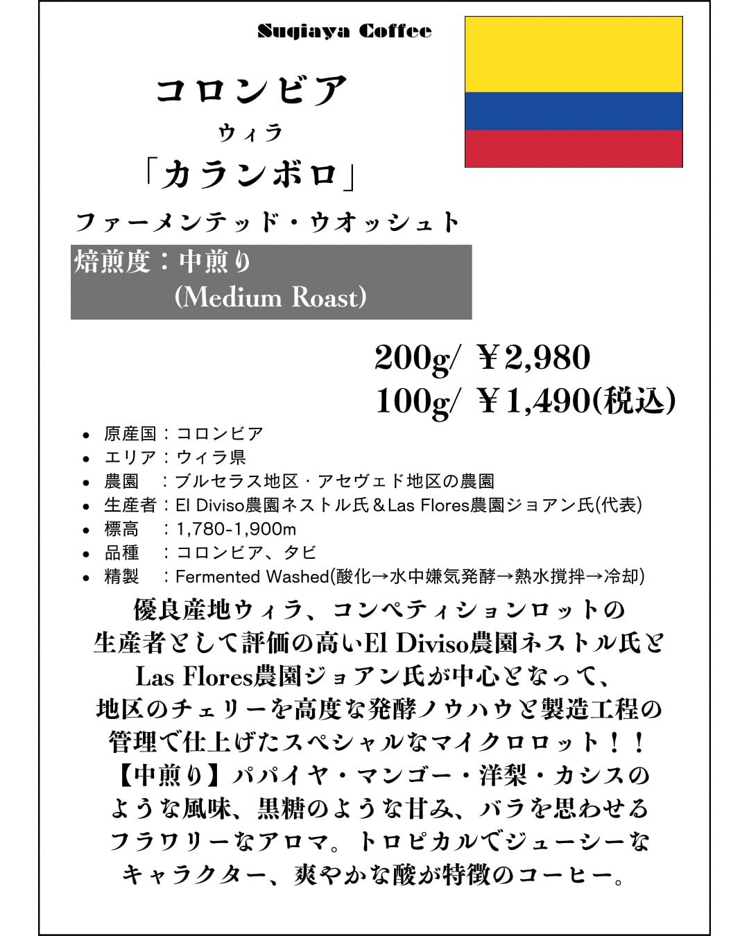 コロンビア中煎り/深煎り「カランボロ」Fermented Washed100g